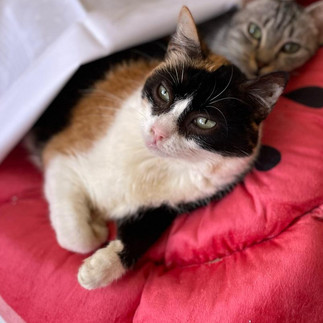 weiblich | tricolor | ca. 2021 | verträglich mit 1-2 Katzen | Wohnungshaltung/gesicherter Freigang | sehr lieb, verschmust